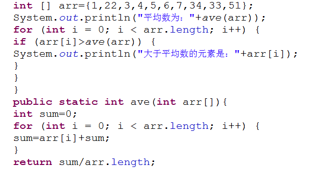 3.在main方法中将该数组中大于平均数的元素打印到控制台上(平均数用2中定义的方法得到)