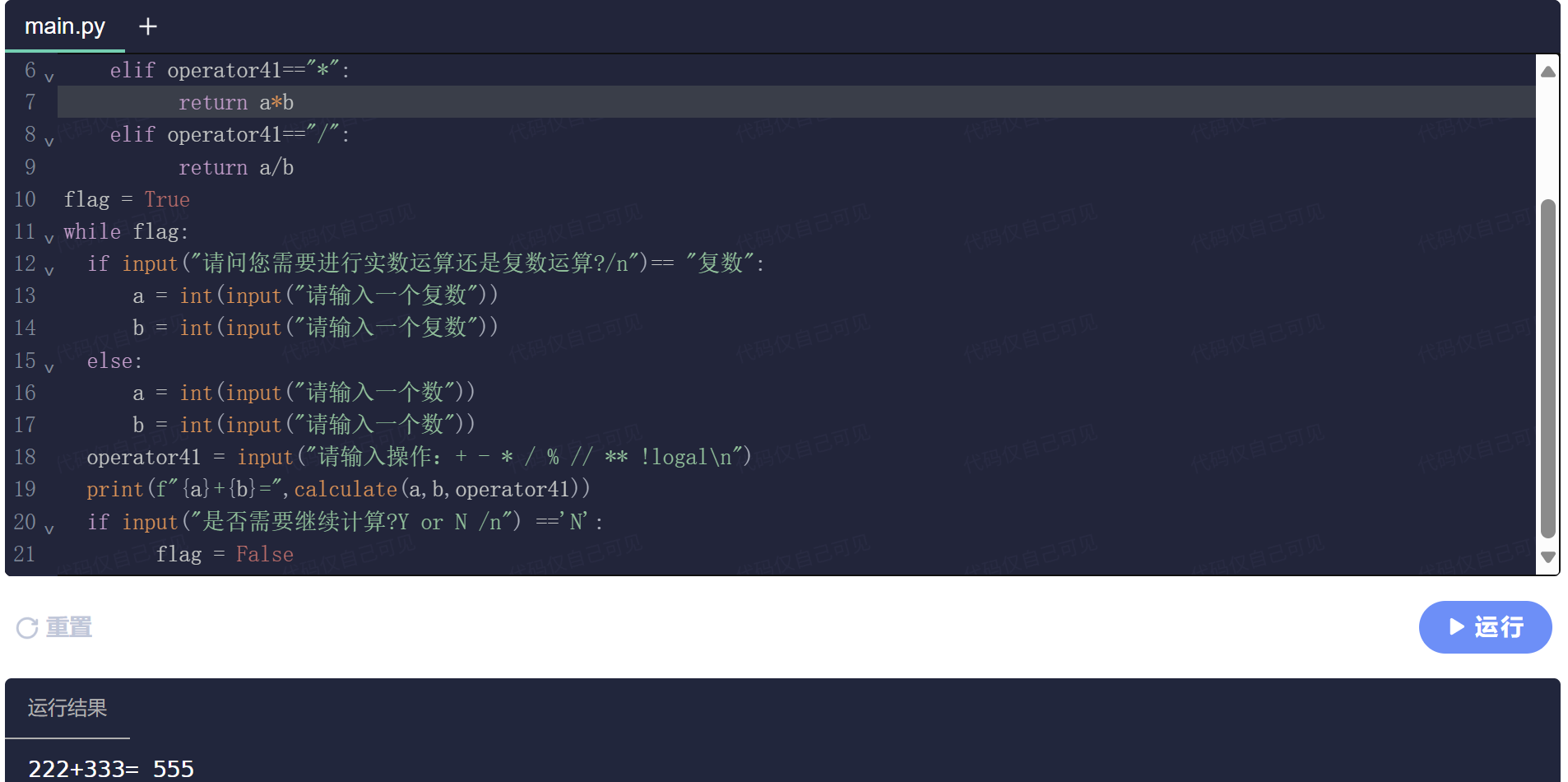 循环结构:使用 while 循环让用户可以多次进行运算,直到选择退出。