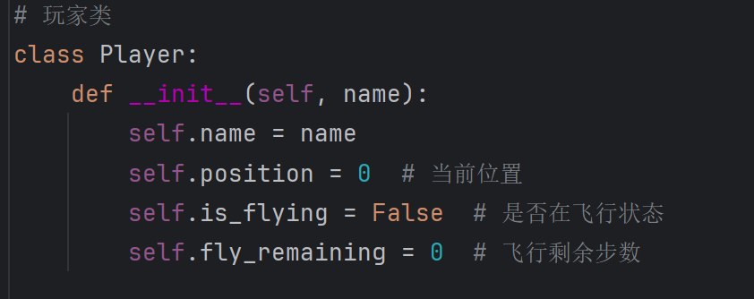 通过玩家类飞行棋面板的相关编写来定义玩家(player)的相关属性(姓名,位置,飞行状态)