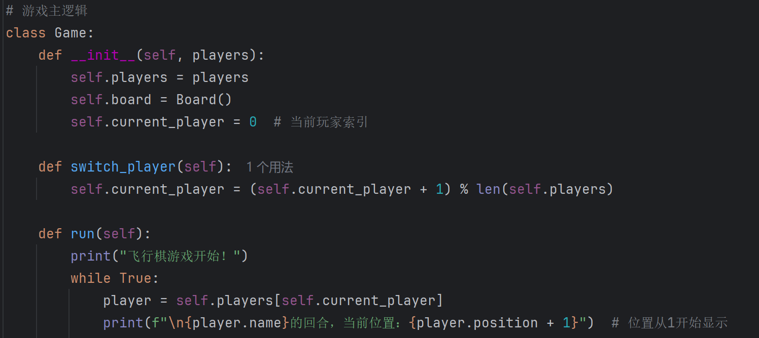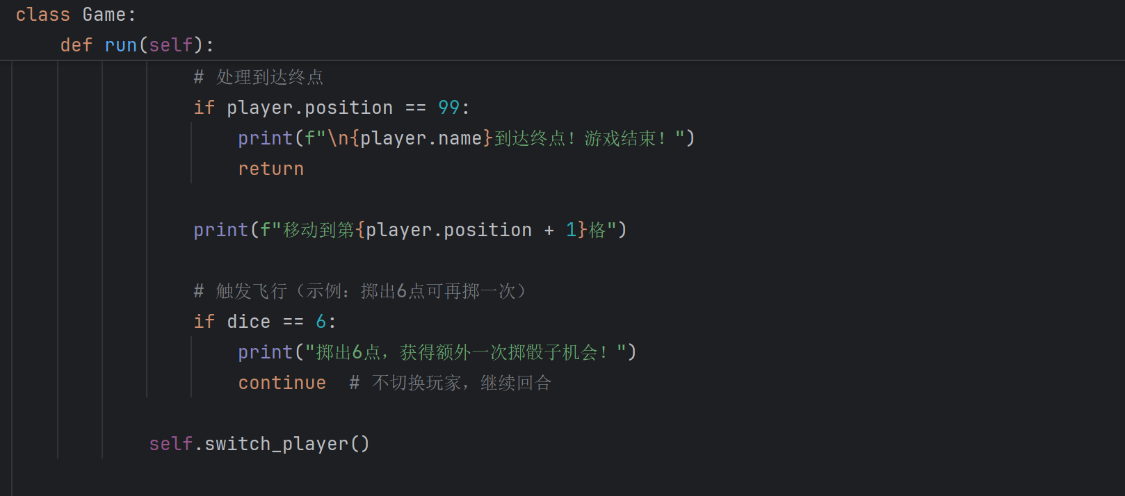代码中预留了 is_flying 和 fly_remaining 字段,可扩展为“飞行N步”的规则(如踩到特定格后强制飞行若干步),当前版本简化为连续掷6点的逻辑。