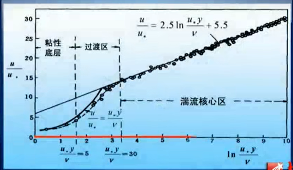 湍流核心区的边界条件:在湍流核心区和粘性底层交界处,速度应该是相同的。即,y=Δ