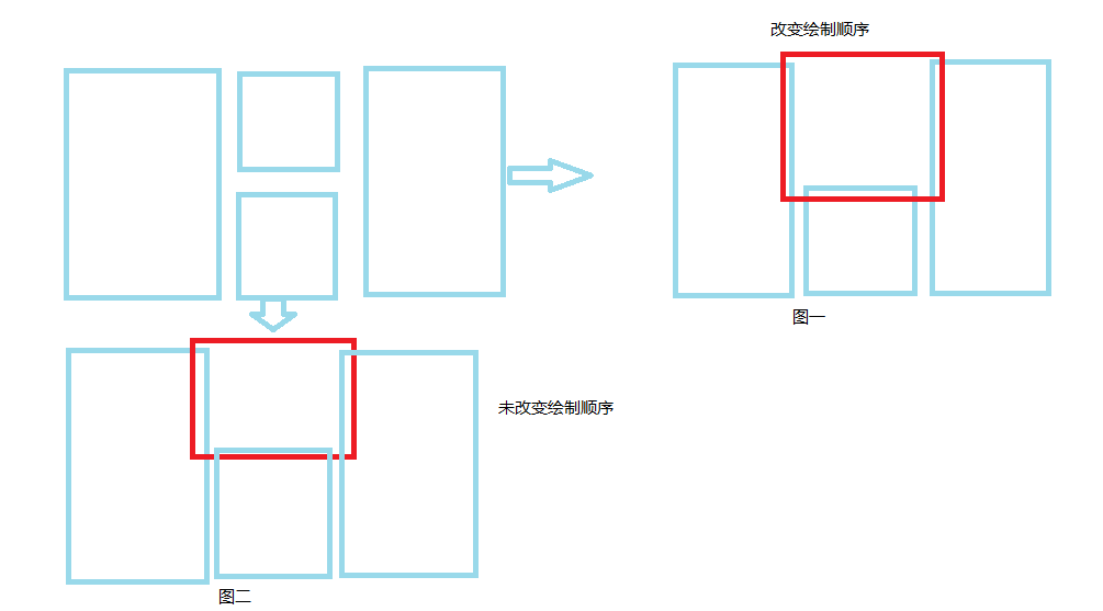 如上图所示,图一显示效果就是焦点view放大,改变绘制顺序的实现效果。改变绘制顺序其实就是重写ViewGroup的getChildDrawingOrder(int childCount, int i)方法,每一次绘制时,最后返回focusview所在的viewgroup中的index就行了。