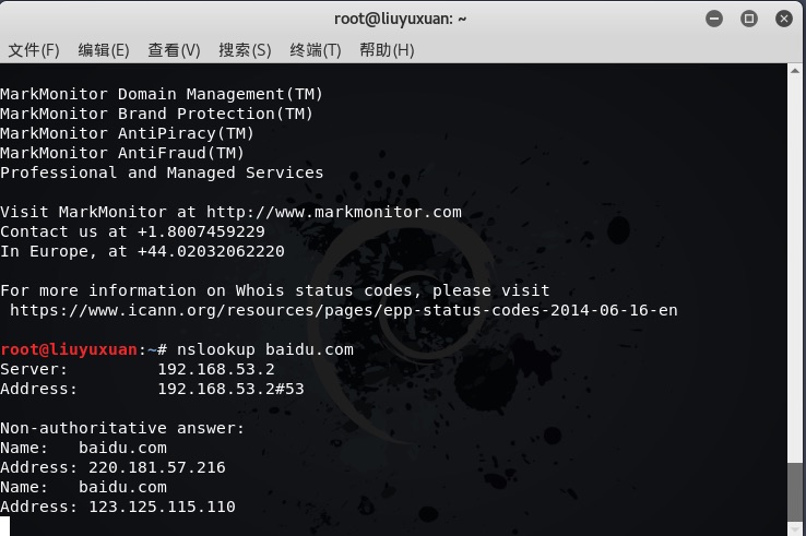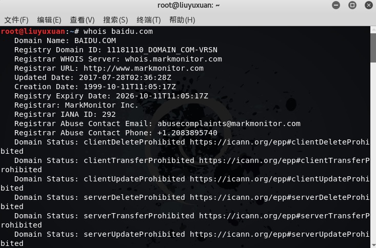 whois Address查询目标网址信息,这里查询了度娘,可以看到百度的许多相关信息,有注册信息、管理员信息等等![]()