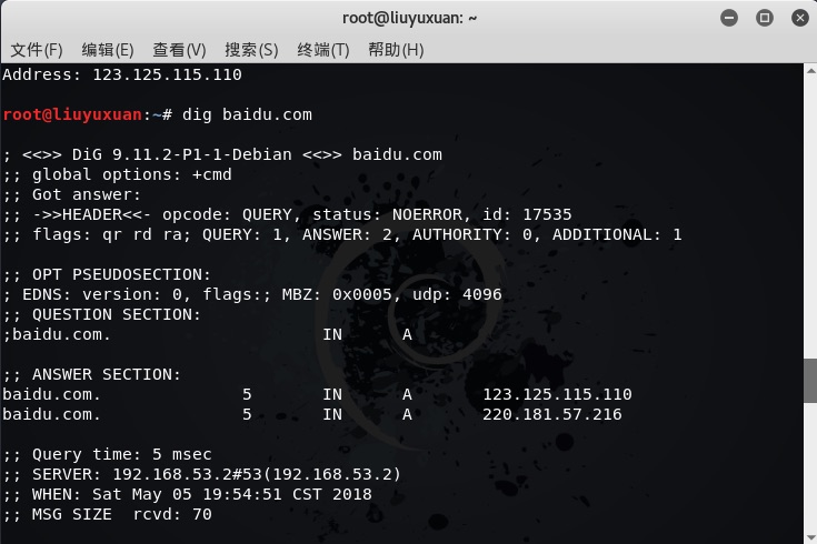 1.3运用dig命令查询并显示域名的高级数据