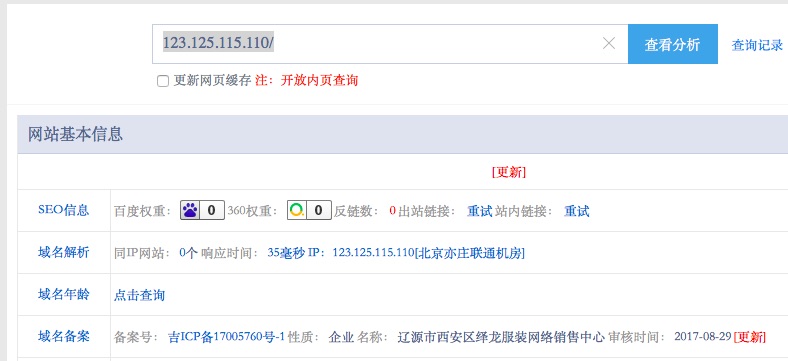先是站长之家查询了ip地址,可以看到在北京