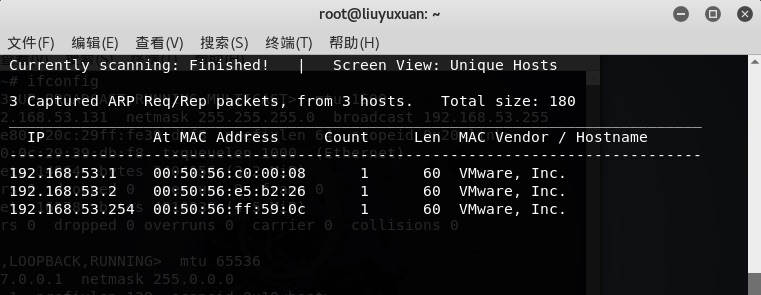 1.6运用netdiscover -r 192.168.53.131/24扫描本地网络主机