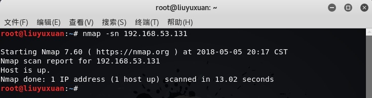 1.7.2运用nmap -sn ip寻找目标ip中的活跃主机