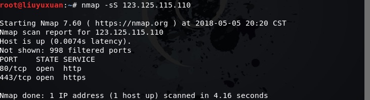 1.7.3运用nmap -sS ip对目标ip进行TCP端口扫描