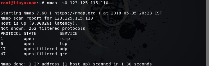 1.7.4运用nmap -sO ip探测目标ip,TCP/IP协议簇中有哪些协议以及类型号