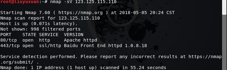 1.7.5运用nmap -sV ip对目标ip进行版本检测
