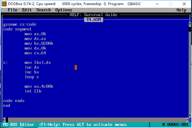 2. 综合使用 loop,[bx],编写完整汇编源程序,实现向内存 0:200~0:23F 依次传送数据 0~63(3FH)。