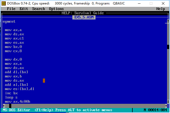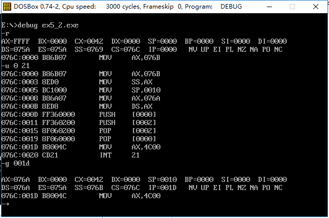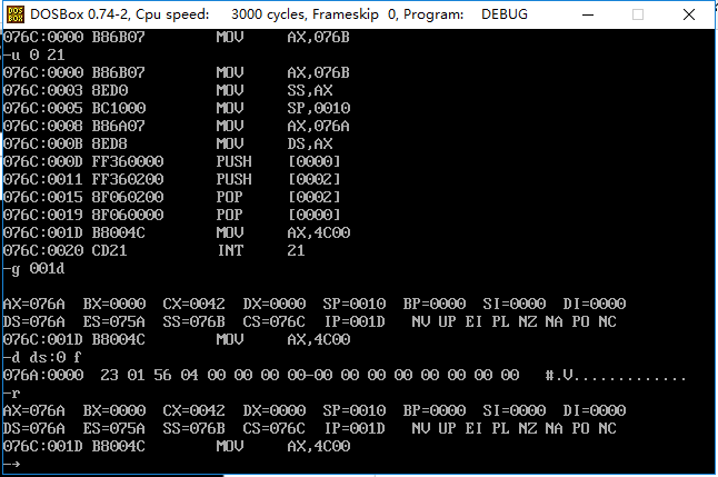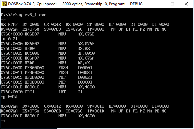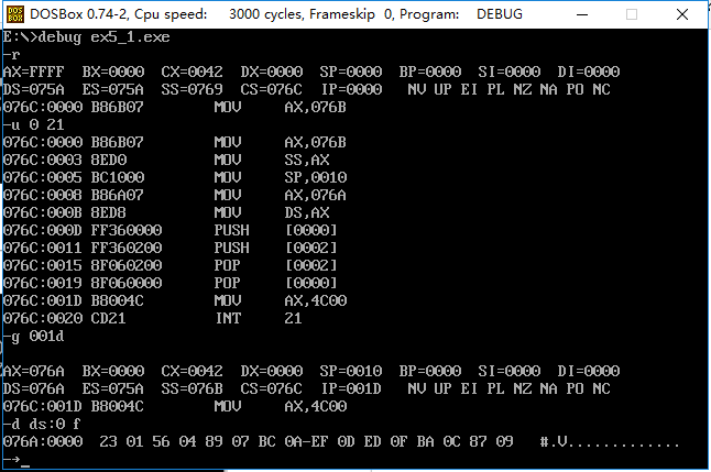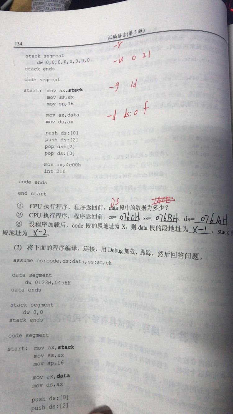 1. 理解和掌握将数据、代码、栈放入不同段的程序的编写和调试