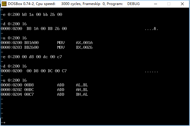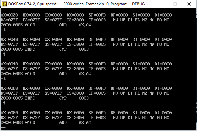 注意:2的8次方的十六进制是80H,T命令可以执行CS:IP指向的命令。