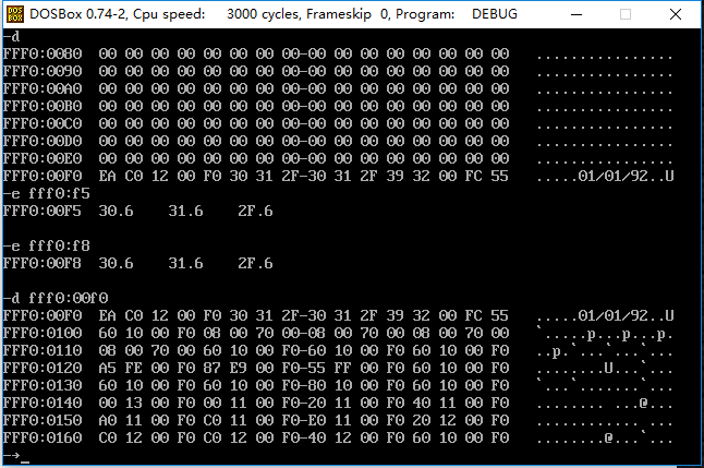 注意:ROM只读不能修改,所以e指令不能修改日期。