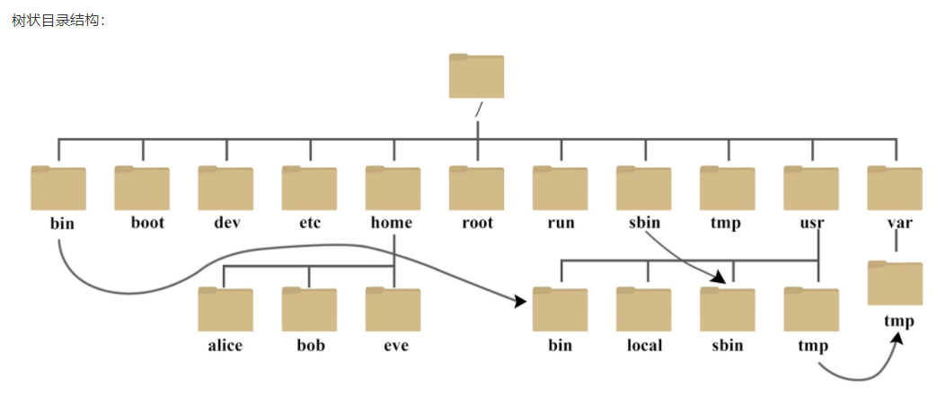 文件系统的最顶层是由根目录开始的,系统使用 / 来表示根目录。在根目录之下的既可以是目录,也可以是文件,而每一个目录中又可以包含子目录文件。如此反复就可以构成一个庞大的文件系统。