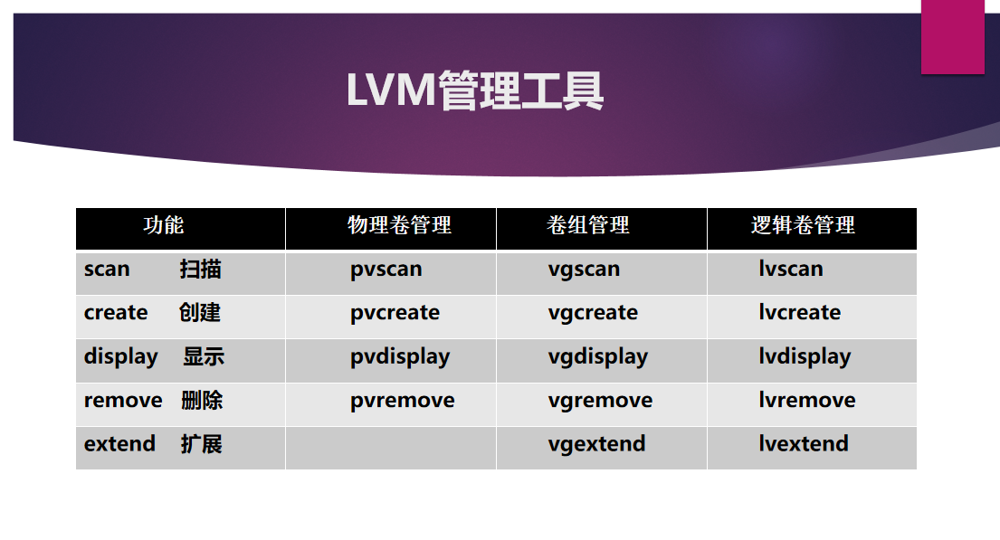 卷组的空间来源于物理卷,当卷组没有足够空间提供给逻辑卷时,须扩容卷组 ——使用 vgextend 扩容卷组