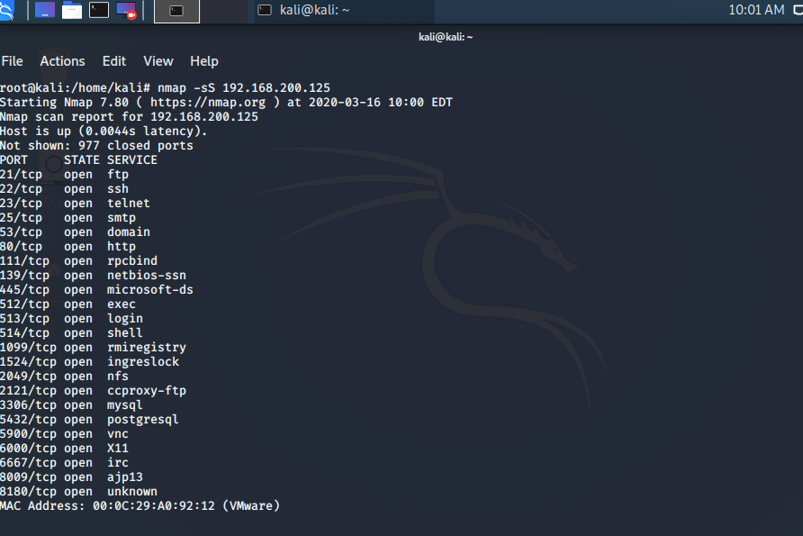 使用nmap -sS对linxu靶机TCP端口进行扫描:
