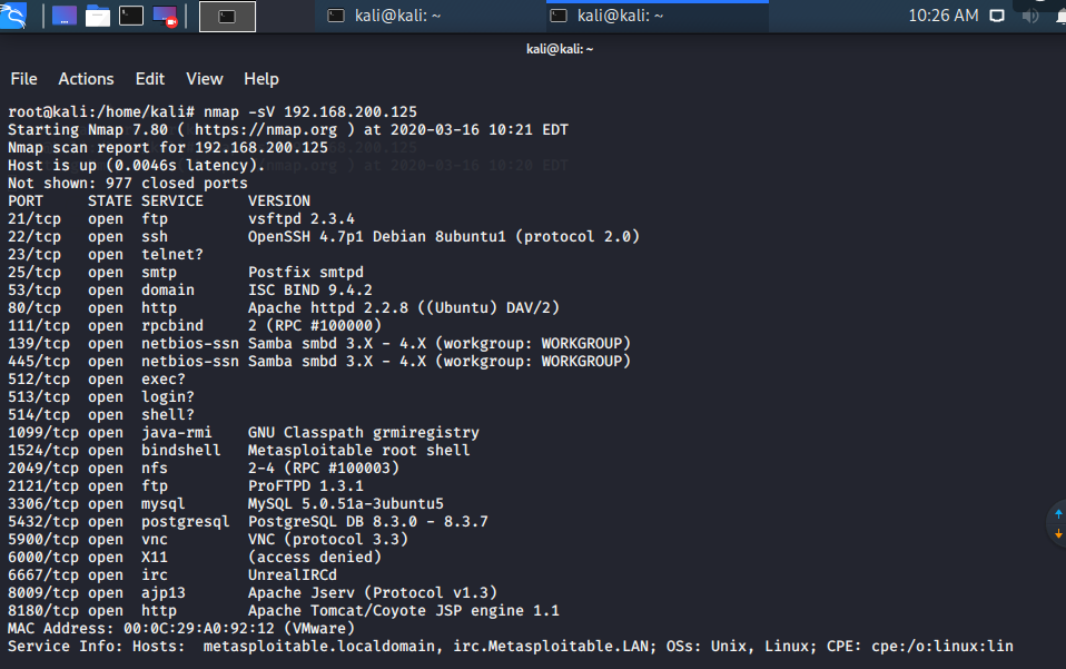使用nmap -sV查询网络服务: