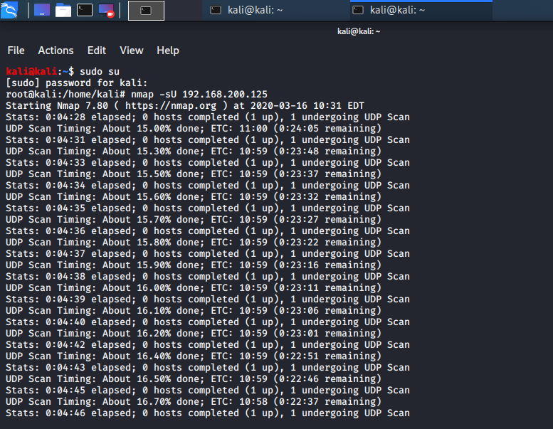 使用nmap -sU对UDP端口进行扫描:
