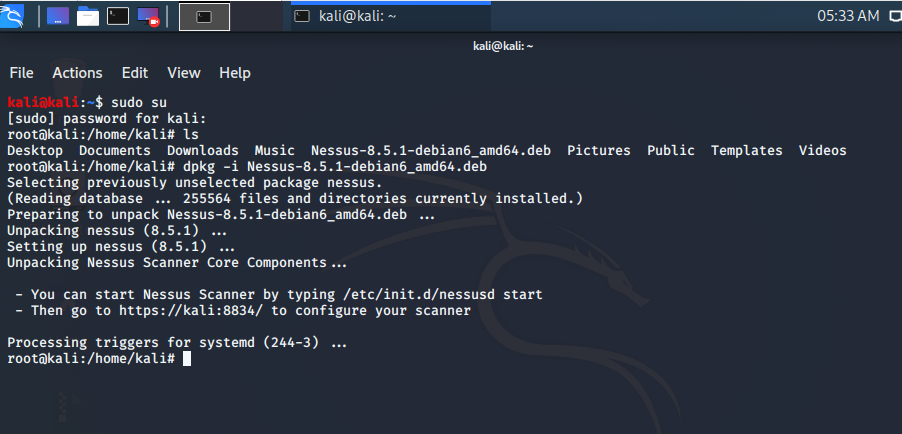 输入dpkg -i Nessus8.5.1-debian6_amd64.deb: