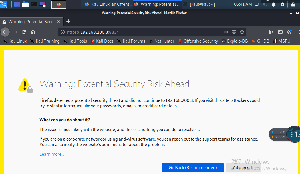 打开kali中的火狐浏览器,输入https://192.168.200.3:8834进入网页