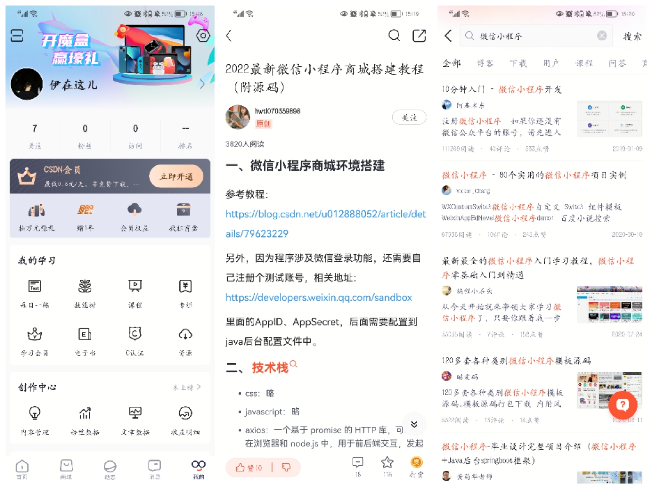 - 在搜索框上输入了“微信小程序”等关键词,依据自身需要参考并改进。