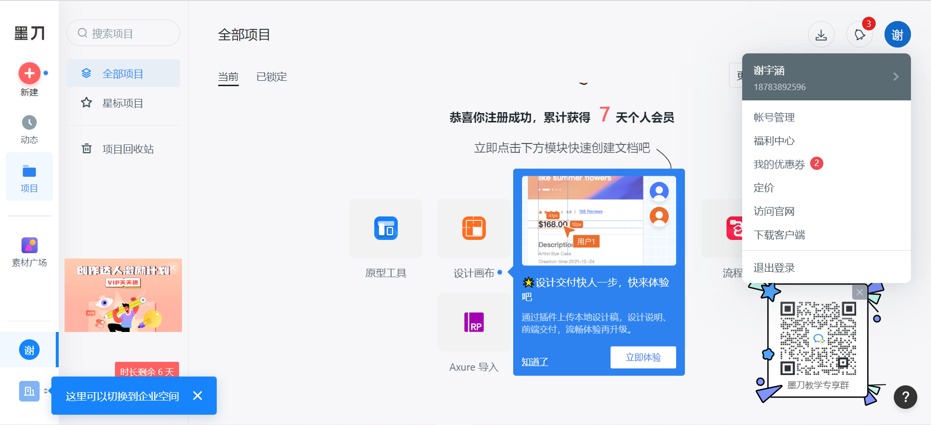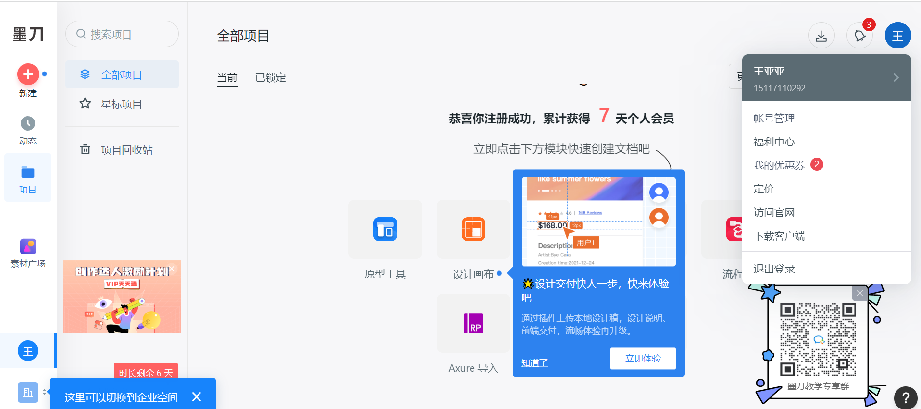 墨刀为企业级用户提供权限控制、项目管理及基础项目数据统计等功能。