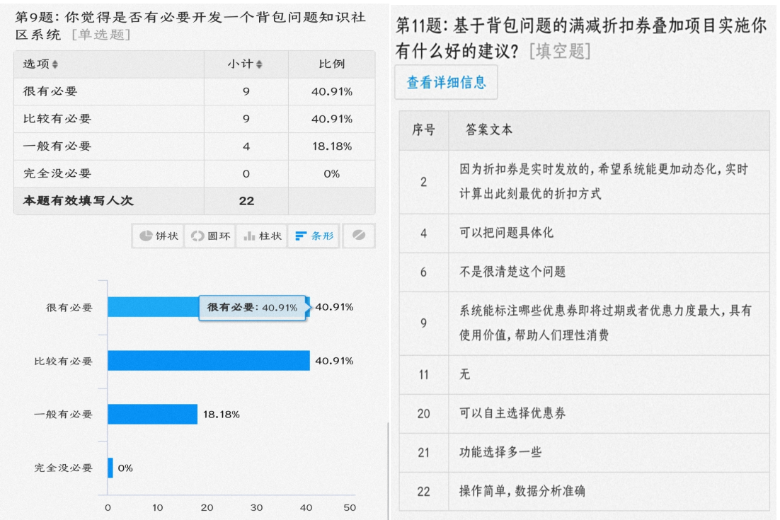对于这个软件的需求,我们进行了一个简单的问卷调查;通过问卷调查的结果发现,大多数人都有使用优惠券的习惯,且对于一款能自动计算所有最优满减折扣券叠加的系统是十分渴求的,根据我们的市场调研发现约有77.27%的消费者认为此项目的开展很有必要,市场需求度较大。在这次项目中,我们将认真设计并做好每一个界面,做好每一个功能,做一个比较完善的软件。