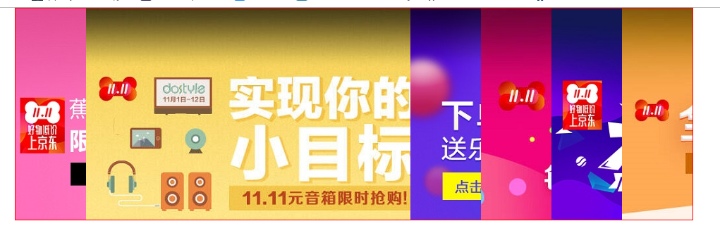 24 ul li:hover{鼠标悬浮当前li时,宽度变宽 25 width: 460px; 26 } 27 </style> 28 </head> 29 <body> 30 <ul> 31 <li><img src="video/images/ad1.jpg" alt=""></li> 32 <li><img src="video/images/ad2.jpg" alt=""></li> 33 <li><img src="video/images/ad3.jpg" alt=""></li> 34 <li><img src="video/images/ad4.jpg" alt=""></li> 35 <li><img src="video/images/ad5.jpg" alt=""></li> 36 <li><img src="video/images/ad6.jpg" alt=""></li> 37 </ul> 38 </body> 39 </html>