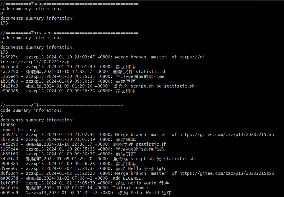 2024/1/10 周三 gitee仓库连接:https://gitee.com/zzzxp13/20202215zxp.git 当天工作: 1.开题报告重新提交 2.提交周二组会的指导记录 3.阅读娄老师推荐书目,初步学习Spring Boot+Vue编程内容,尝试编写前段vue代码 当前已完成任务截图: