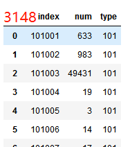 def xiaguang(i): #自定义统计函数 j = i.loc[(i['fullURL'].str.contains('\.html'))==False, ['fullURL','fullURLId','pageTitle']] return j # 注意获取一次sql对象就需要重新访问一下数据库 engine = create_engine('mysql+pymysql://root:123456@127.0.0.1:3306/test?charset=utf8') sql = pd.read_sql('all_gzdata', engine, chunksize = 10000)# 分块读取数据库信息 counts5 = [xiaguang(i) for i in sql] counts5 = pd.concat(counts5) xg1 = counts5['fullURLId'].value_counts() print(xg1) # 求各个部分的占比 xg_ = pd.DataFrame(xg1) xg_.reset_index(inplace=True) xg_.columns= ['index', 'num'] xg_['perc'] = xg_['num']/xg_['num'].sum()*100 xg_.sort_values(by='num',ascending=False,inplace=True) xg_['type'] = xg_['index'].str.extract('(\d{3})') #提取前三个数字作为类别id xgs_ = xg_[['type', 'num']].groupby('type').sum() #按类别合并 xgs_.sort_values(by='num', ascending=False,inplace=True) #降序排列 xgs_['percentage'] = xgs_['num']/xgs_['num'].sum()*100 print(xgs_.round(4))