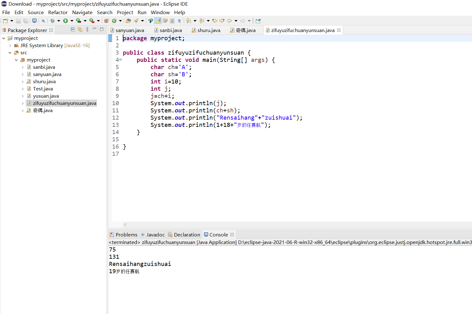 字符在计算机底层对应的数值来进行运算的,算术表达式中包含多个基本数据类型的值的时候,整个算术表达式的类型会自动进行提升。
