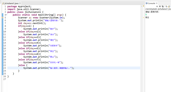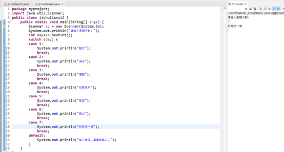 周一:跑步,周二:游泳,周三:慢走,周四:动感单车,周五:拳击,周六:爬山,周日:休息。
