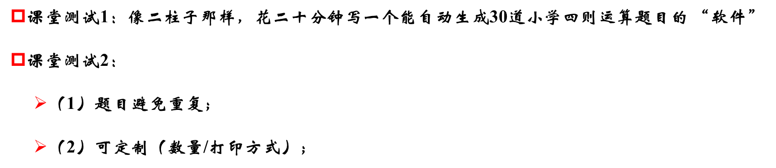 测试一和测试二较为简单,生成随机数并且保证不会有重复的题目,就可以完成