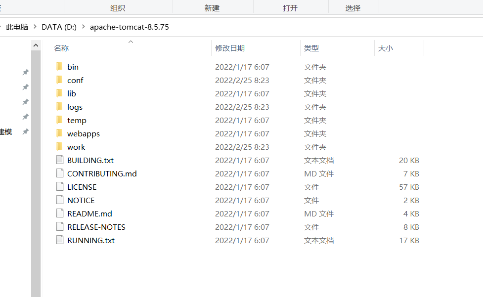 bin:专门用来存放Tomcat服务器的可执行程序。