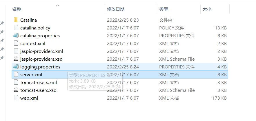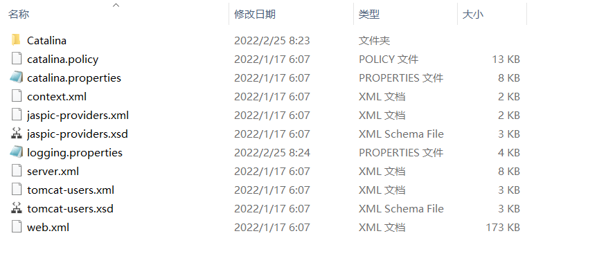conf:专门用来存放Tomcat服务器的配置文件。