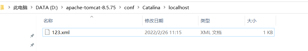 方法二:打开Tomcat下的conf\Catalina\localhost目录,创建配置文件。