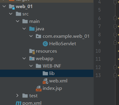 3.1 首先在WEB-INF目录下创建lib目录,该目录用来存放用来导入的jar包。