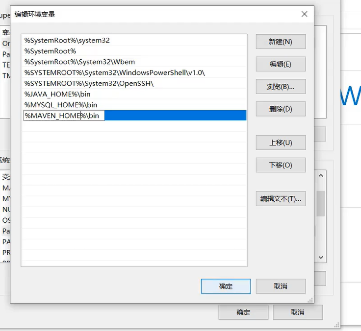 下载maven之后,添加maven的环境变量,然后在path路径下添加maven的运行路径如图
