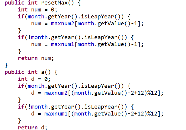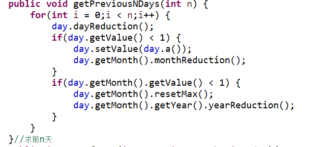 2.在计算前n天以及后n天时每次都会出现几天的差异,后来把每次推算后的日期输出发现在2月每次都是29天。后来在代码中加上了一个方法专门返回上一个月的最大天数。