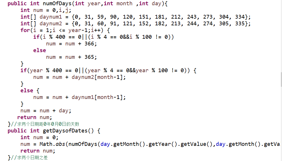 int num = dateUtil.getDaysofDates();