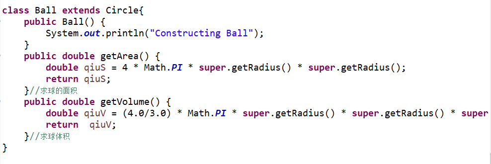 4.类Ball,继承自Circle,其属性从父类继承,重写父类求面积方法,求球表面