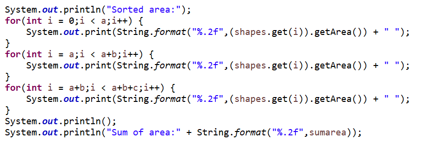 6.保留两位小数输出所求面积,并将面积排序后再次输出。