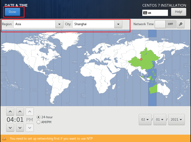 5.把时区改成中国的时区,我这里选择的是中国的上海,然后点击左上角的“Done”。