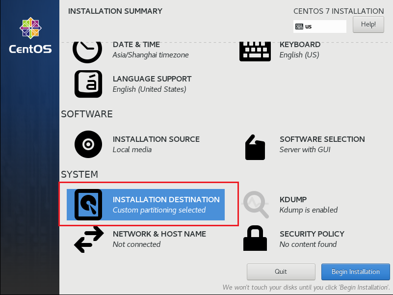 8.第三个选择系统安装位置,点击INSTALLATION DESTINATION