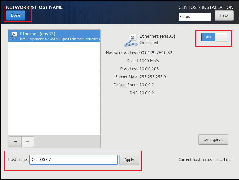 修改HOST NAME:系统的主机名。完成后,点击Done.