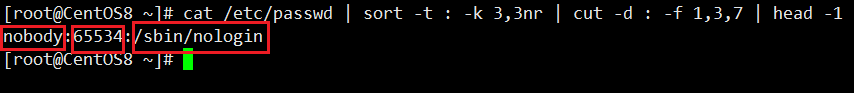 (3)最后使用head命令列出第一条输出,就是UID最大的用户名。