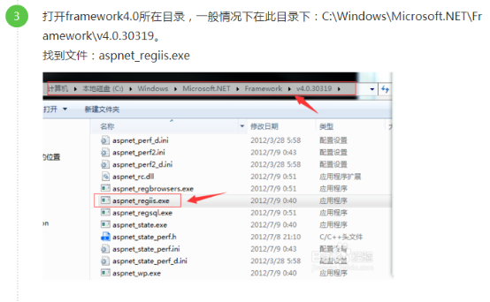 32位Windows:C:\Windows\Microsoft.NET\Framework\v4.0.30319\aspnet_regiis.exe -i