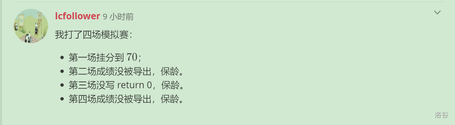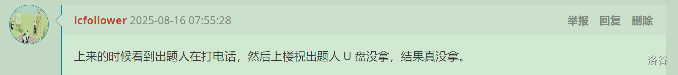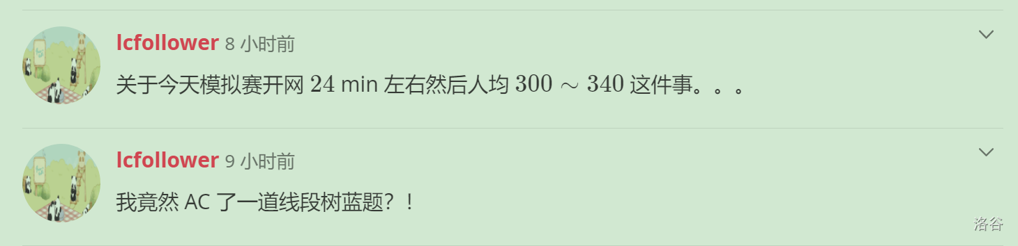 什么你问为啥“好多人题解已经 C 好了就等导出后提交”,原来是因为 Lmq 走后开网了 \(24\) min 没人关网,大家 deepseek + 原题机直接人均 \(300 \sim 340\),我还以为某些入终于有出息了,逆天。