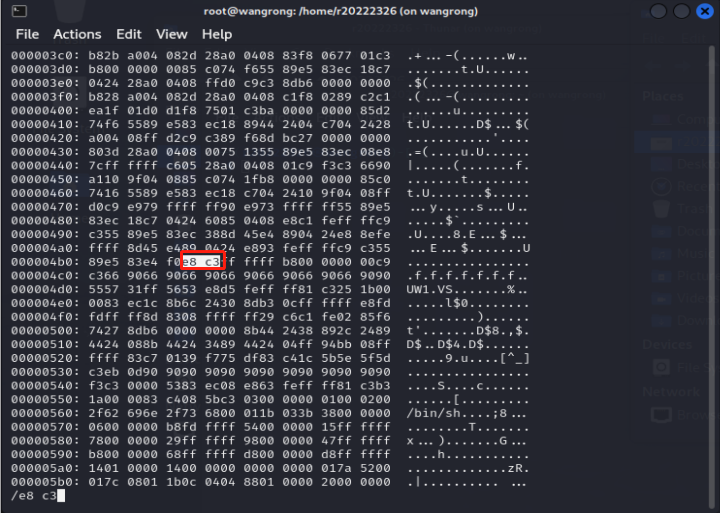 - 修改可执行文件,将其中的call指令的目标地址由d7ffffff变为c3ffffff